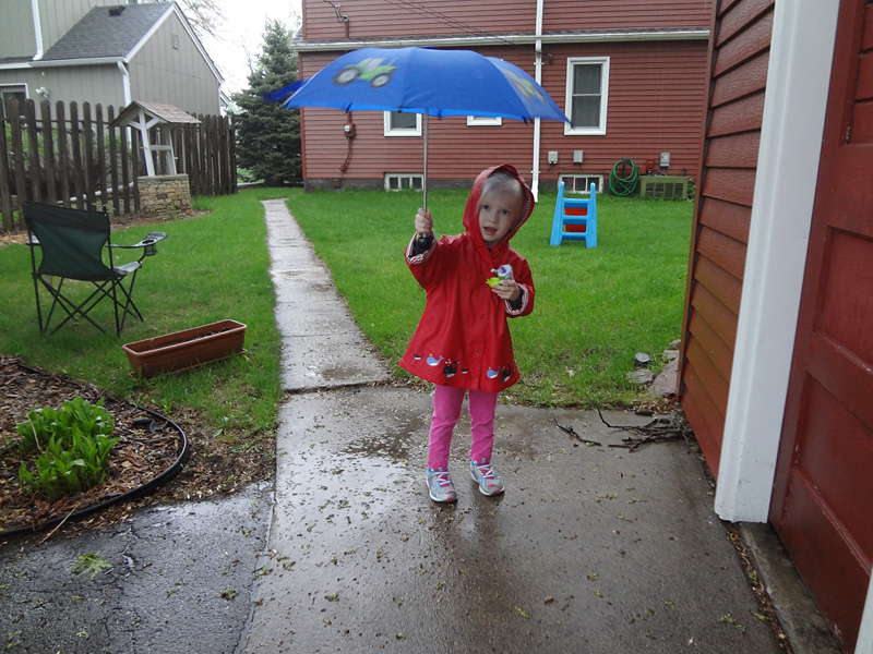 Eventually, Greta and Riley moved to the back yard where they made food in the playhouse kitchen. And Riley started up a conversation with one of our neighbors (seriously, whats up with this girl). And
