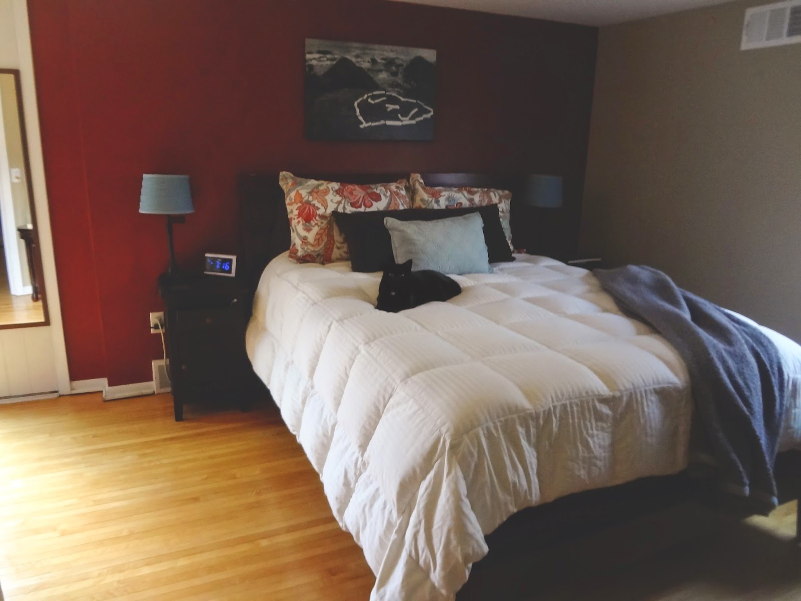 I'm still on some medication that I take right before bed and they really knock me out. I still get up a couple times a night, but sleep is heavier than without the pills. The hard part is coming out of my sleep stupor in the morning. I did wake up around 11:30 to go to the bathroom, but I was also really hot so I removed a blanket layer and probably a cat layer. I woke again around 2:30 and stumbled to the bathroom and back to sleep. I was so out of it both times that I didn't take my standard clock picture. I do remember the second time I woke up from a dream where Jesse, Riley and I went to Cleveland. I have no desire to go there (no offense to anyone from there), but I did just watch an episode of