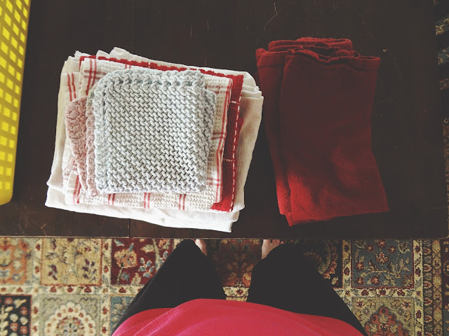 6:54 - Riley heads downstairs to find her dad while I make beds and get dressed for the day. I'm meeting a friend for a walk at 9:00 and it's already a warm morning so I try to dress appropriately (it's supposed to be close to 90 this day). I decide to wear my uniform of capri's and layered tank tops from Old Navy. I have them in many colors and a couple different sizes and wear them all the time. I go with the red top since I have sparkly red toenails (from the 4th of July), but later realize no one will notice my awesome coordination skills since I put on socks and tennis shoes for my walk.