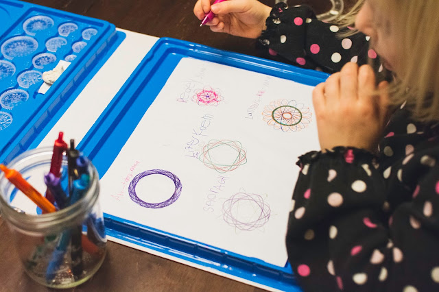 Needless to say, the Spirograph has kept us busy and we've already bought more pens for it. I find it a bit therapeutic and cathartic. It brings me back to my childhood, but it also has me focused on the moment - not distracted by technology or chores around the house. Just me and my pen, and my little girl sitting next to me.